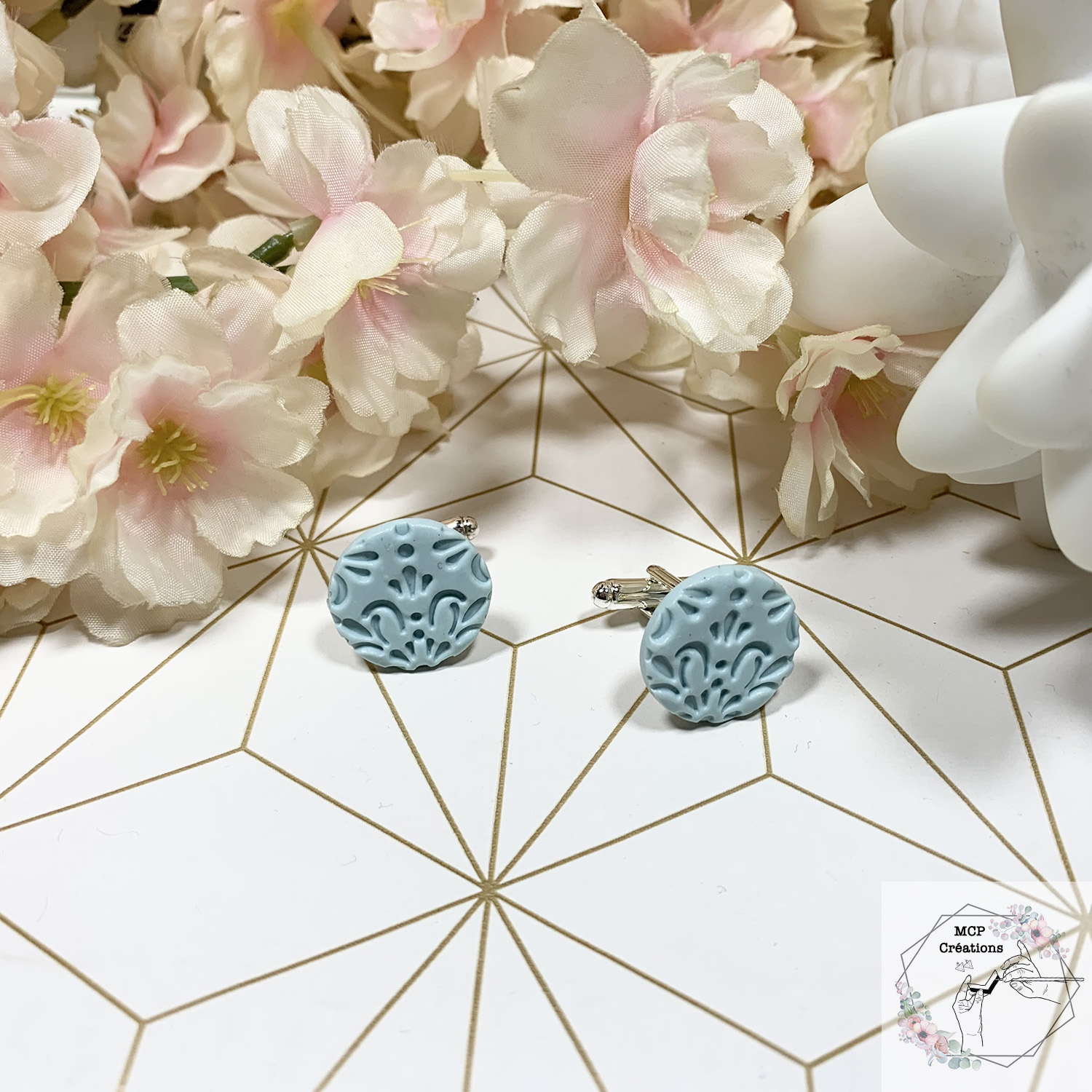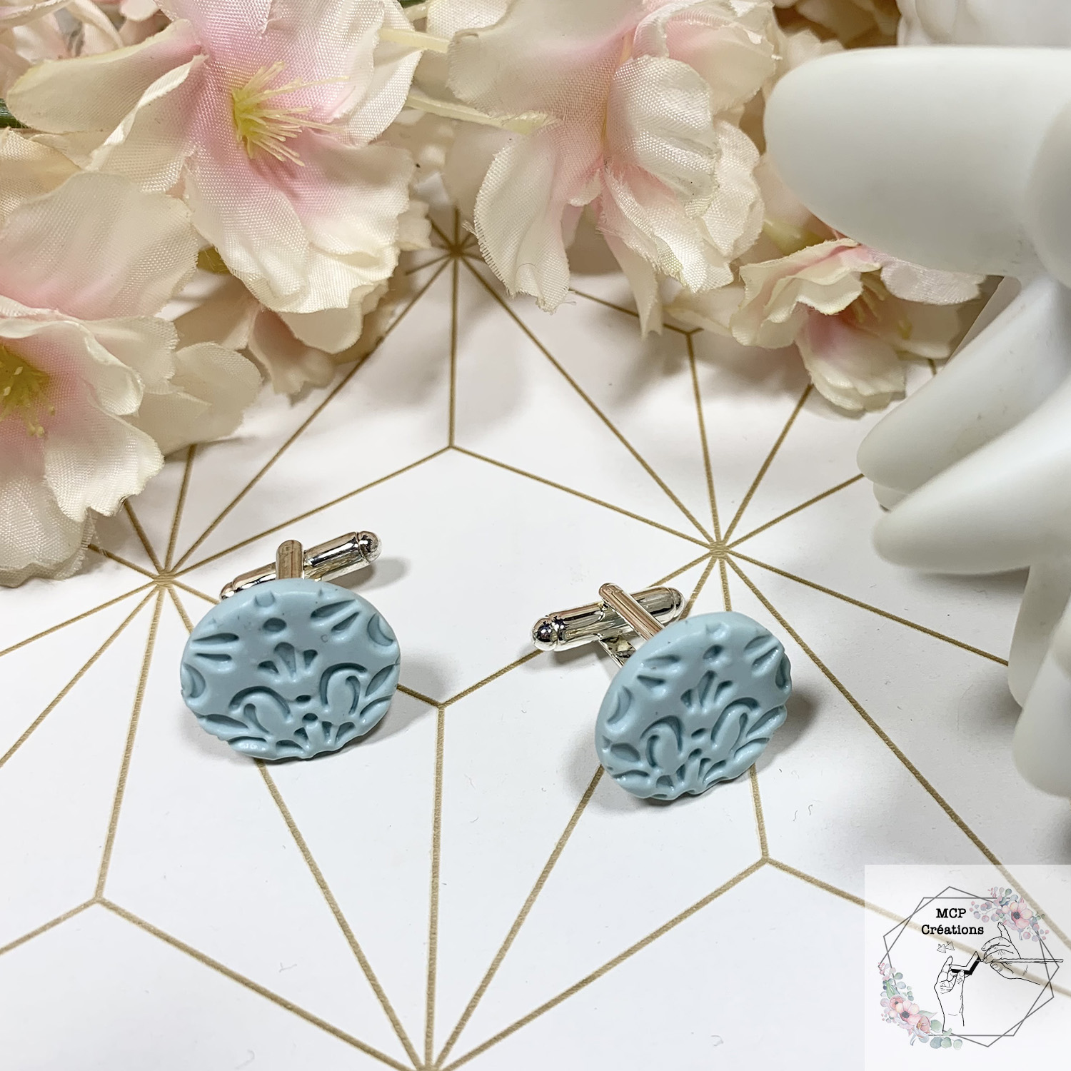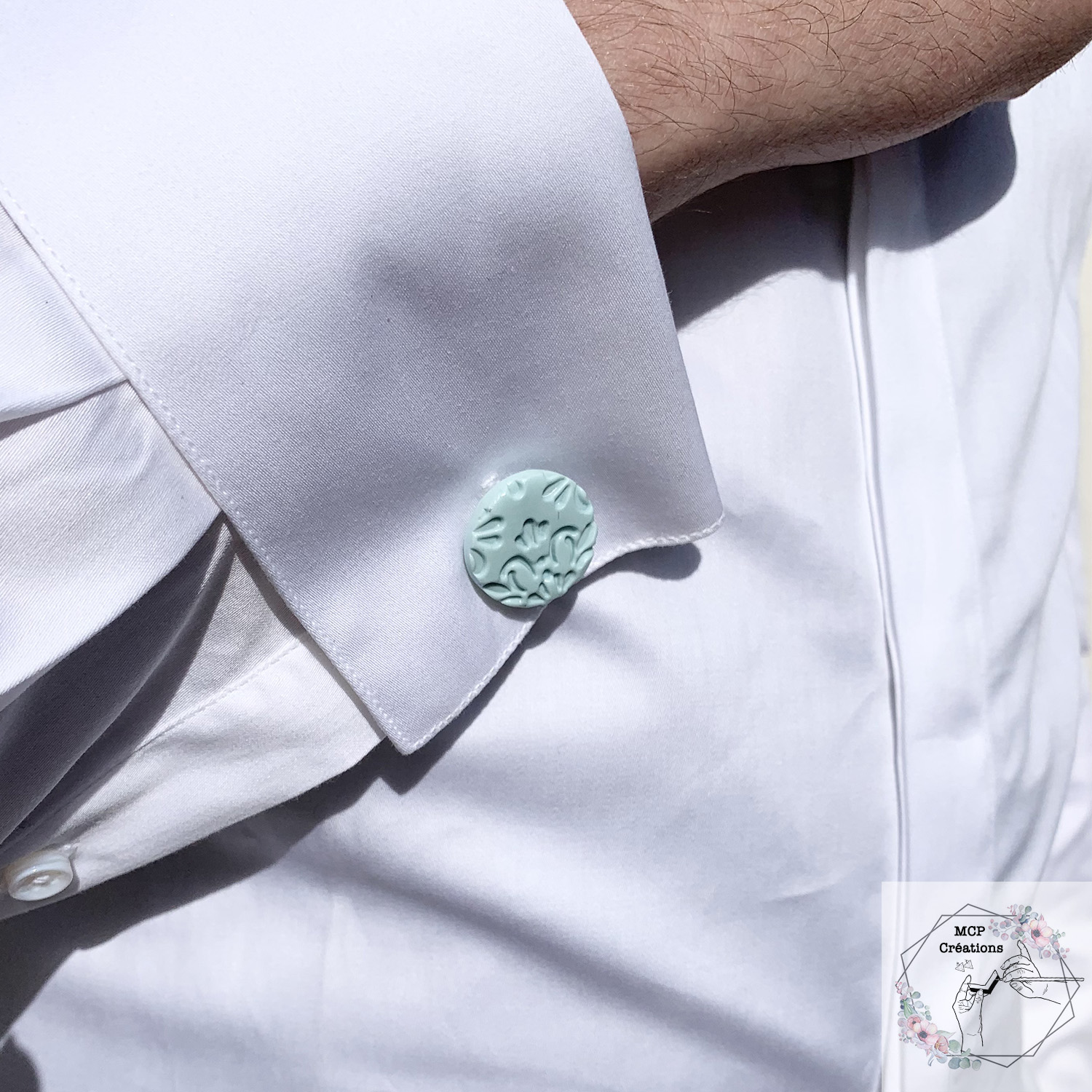 Les éléments en Fimo de ces boutons de manchette sont recouverts d’un vernis qui résiste à l’eau , aux rayures et aux UV.